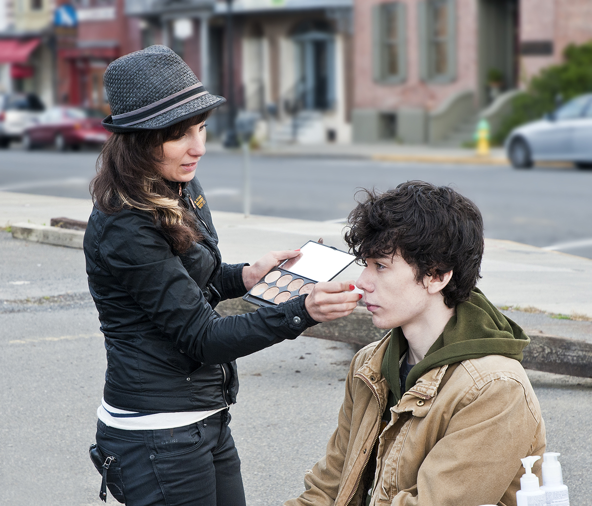 This shot shows Ian being prepped for the first day of shooting by hair and makeup artist Candice Crawford: