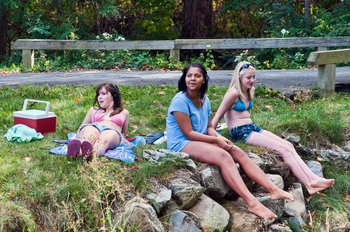 Several local residents volunteered as extras for another scene shot at a ravine outside Hudson: