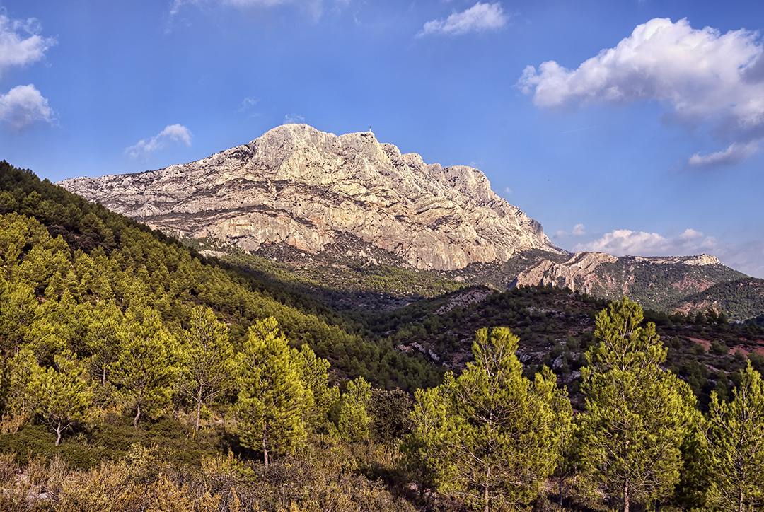 As mentioned in a previous posting in this series, during his lifetime Cézanne painted the Mont Sainte-Victoire no less than 87 times. While Cézanne favored the site at Les Lauves during the last years of his life, he had earlier painted the mountain from a considerable variety of other locations. Another of his favorite viewpoints was from the vicinity of Le Tholonet, a small village lying about four miles east of Aix-en-Provence, along a road known in Cézanne’s day as the Route du Tholonet and now called the Route de Cézanne. In this area, there are wonderful views of the mountain from the southwest, as opposed to the view from straight west seen at Les Lauves. This is one of Cézanne’s paintings of Mont Sainte-Victoire from a viewpoint near the Route du Tholonet: