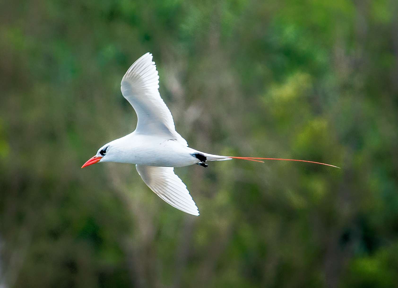 In this shot, I caught a red-tailed tropicbird on a rapid fly-by: