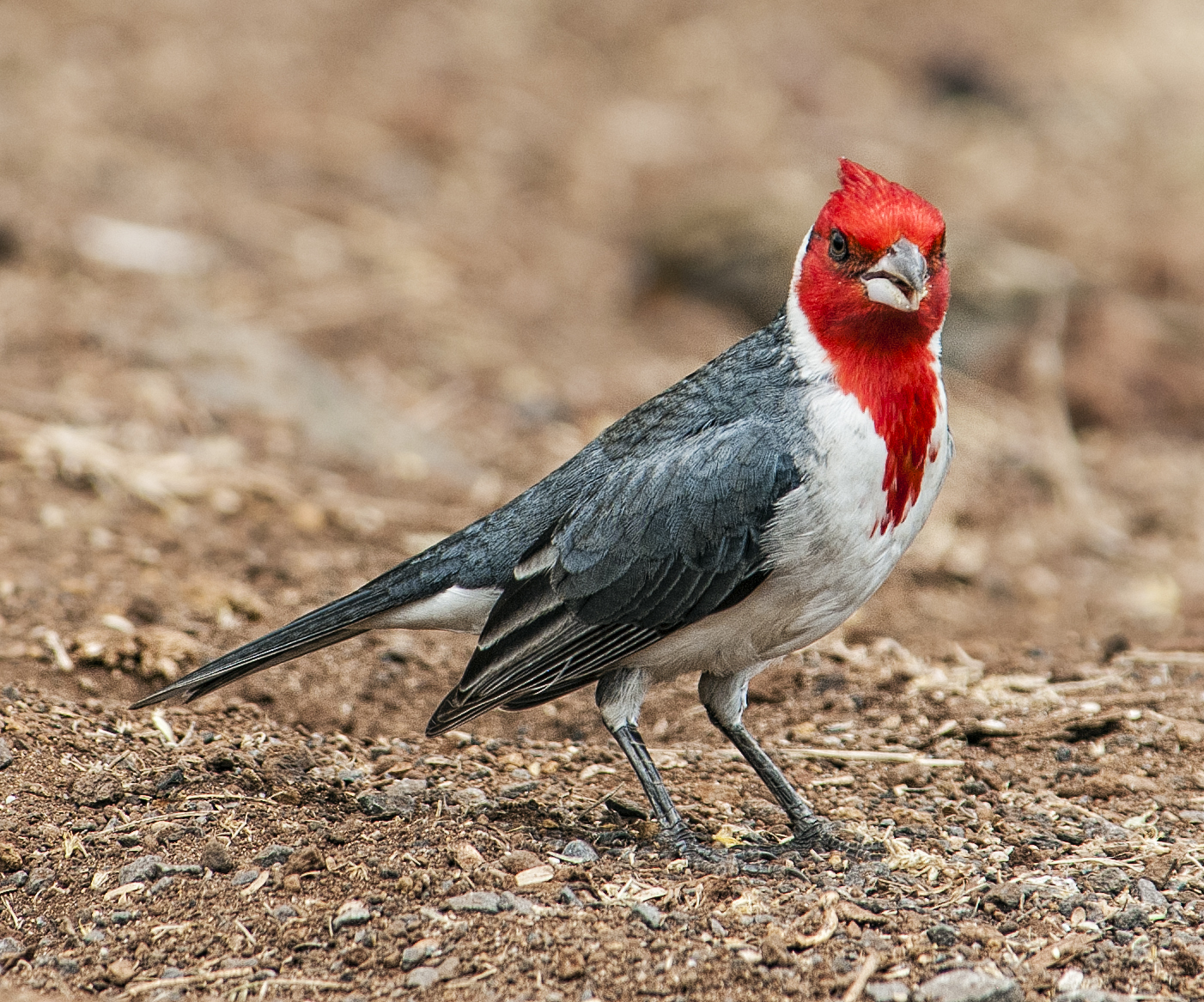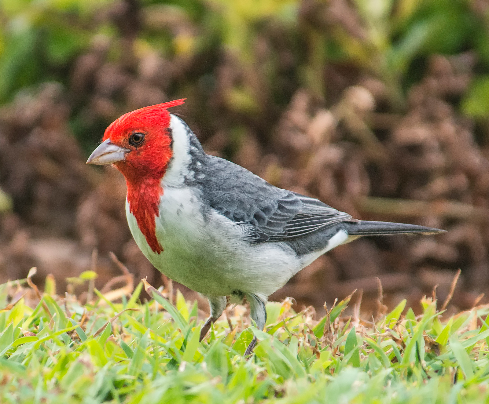 Red-crested cardinals are indigenous to Brazil, Argentina and other parts of South America, and in fact are also known as Brazilian cardinals. They were introduced to Hawaii around 1930 and today are common throughout the Hawaiian islands. Here is one that I found hopping about behind our condo on the north shore of Kauai: