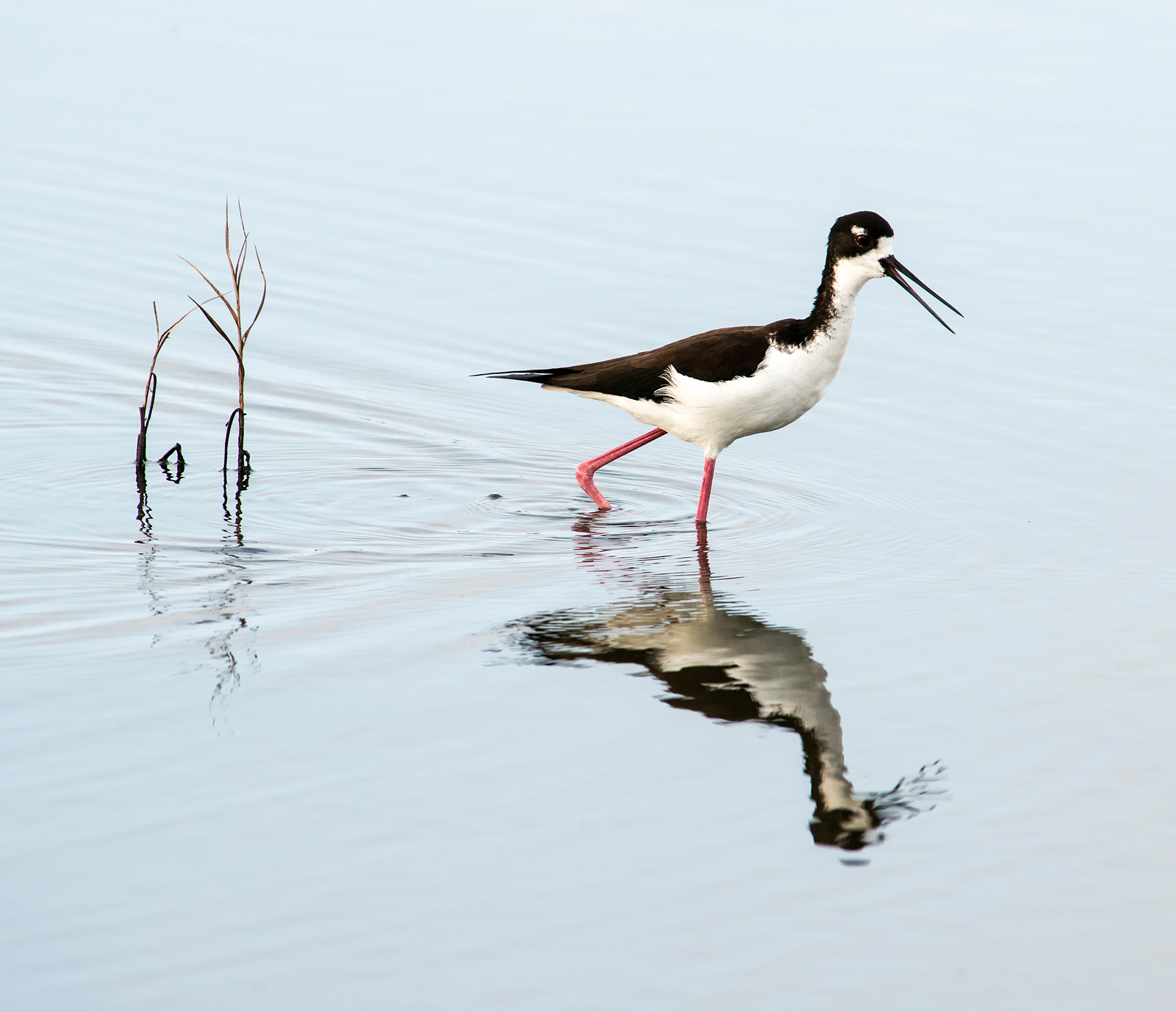 Another good location to see and photograph birds is the Kealia Pond National Wildlife Refuge, located just north of the town of Kihei on Maui. You are sure to find several species of unusual birds there, including the indigenous Hawaiian black-necked stilt (Himantopus mexicanus):