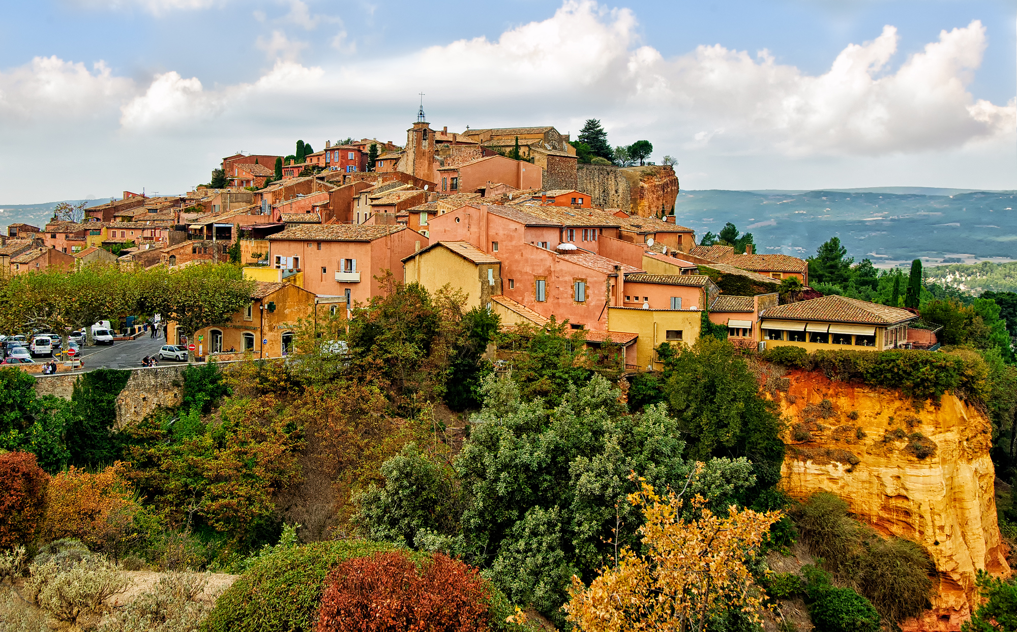 En octobre 2011, j’ai passé quatre semaines à Provence et la Côte d’Azur. Pendant cette période j’ai réservé une journée entière pour visiter Roussillon, un village situé dans le Luberon. Le Luberon est une région montagneuse dans le département de Vaucluse au nord d’Aix-en-Provence. Le trajet d’Aix, òu j’avais loué un appartement, à Roussillon fait environ 60 kilomètres de long, mais on met beaucoup plus q’une heure pour y aller même par les routes les plus directes. Les routes étroites serpentent autour des collines et à travers des vallées pittoresques, et traversent d’autres villages aux coteaux, y compris Bonnieux et Lourmarin qui eux-mêmes méritent une visite d’au moins un jour.
